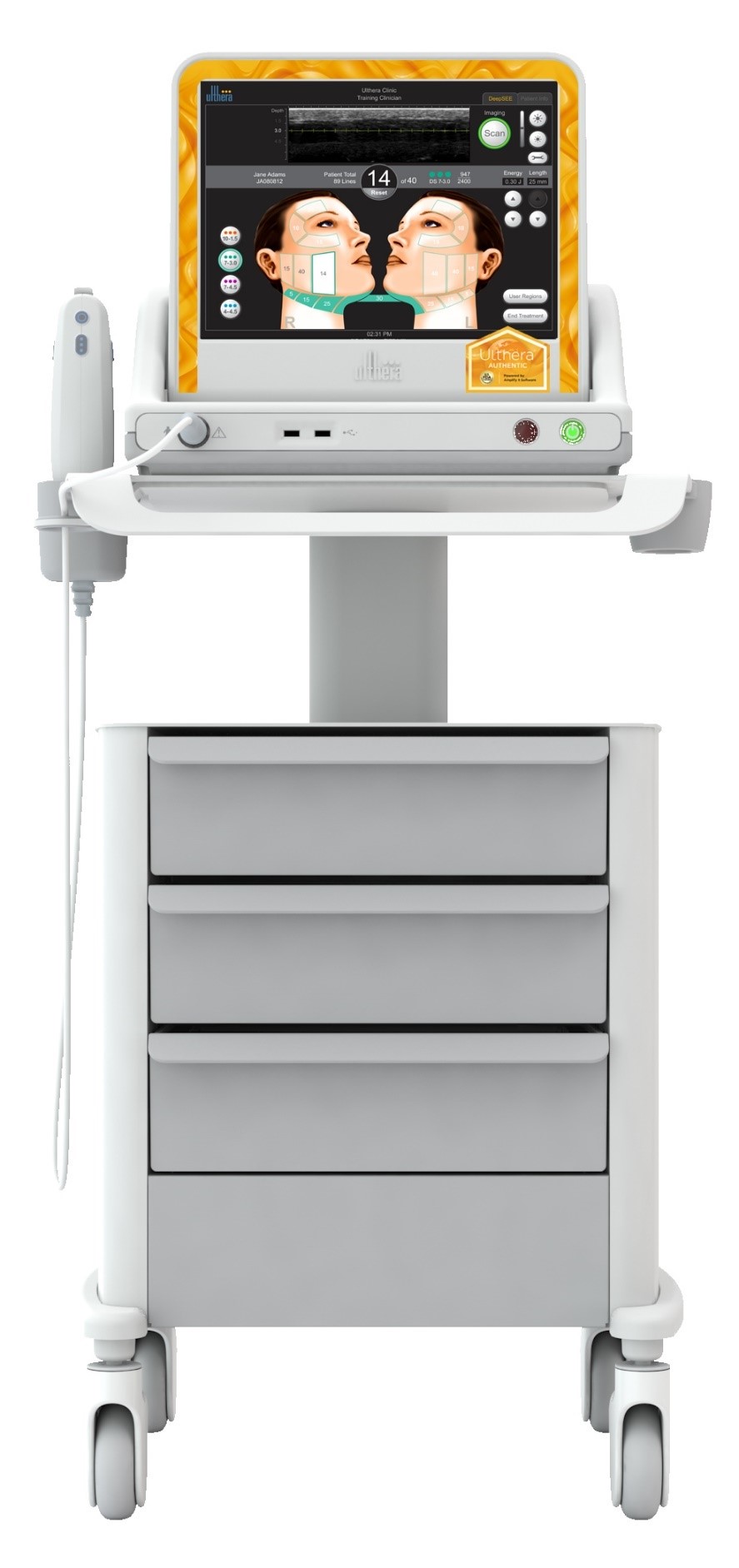 울쎄라 시스템은 시술자가 시술하는 조직을 정밀하게 볼 수 있도록 하는 비침습적 기기입니다.
